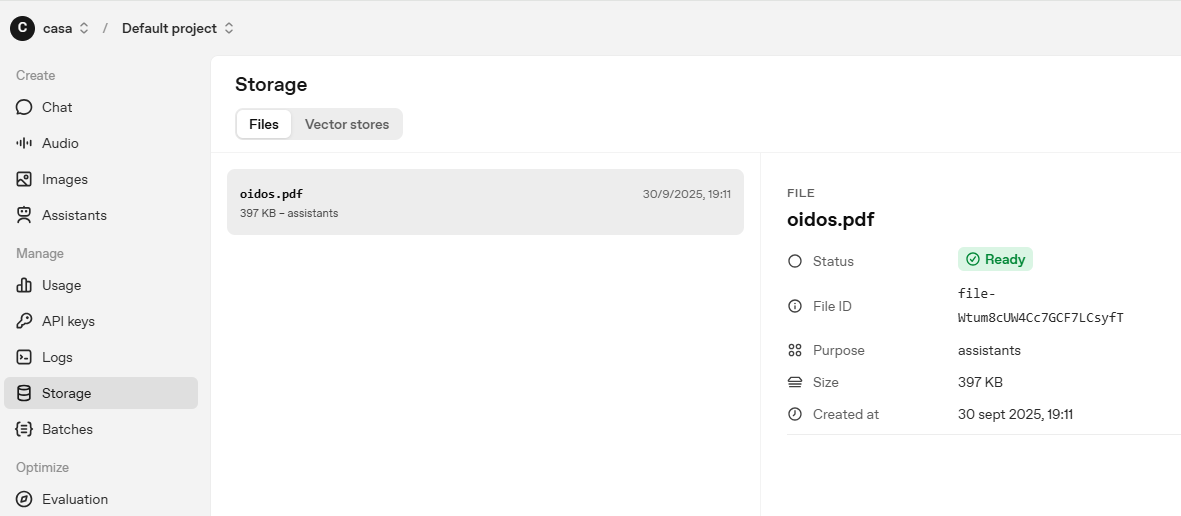 Este identificador también lo podemos ver en el playground de OpenAI (https://platform.openai.com/chat/edit?models=gpt-5) en el menú denominado: Storage.