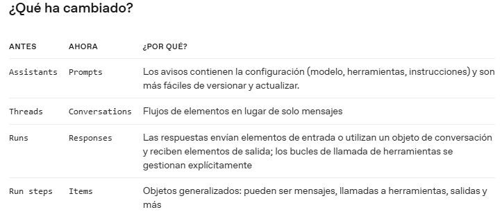 Es de advertir que tal y como figura en su página oficial, en el momento de redactar este documento, esta api está deprecated y dejará de estar disponible el 26 de agosto de 2026, siendo sustituida por la api de responses.